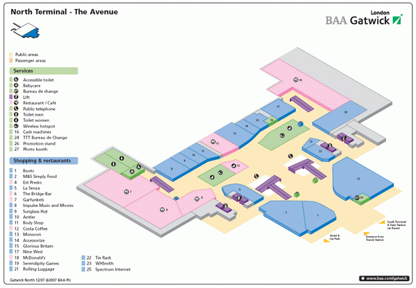 Северный терминал аэропорта Гатвик – зона международных вылетов (нижний уровень)