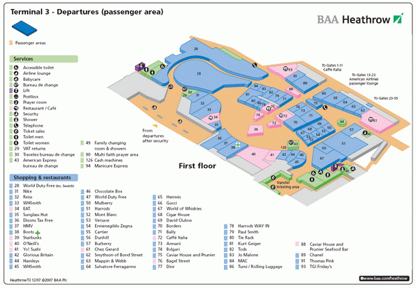 Терминал 3 (Хитроу) – зона вылетов (для пассажиров)