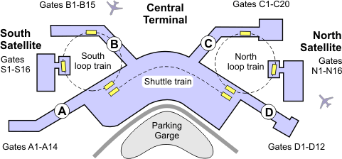 Схема аэропорта Сиэтл и карта его терминалов укажут правильный маршрут от входа до посадки на рейс. Просмотр схемы терминала